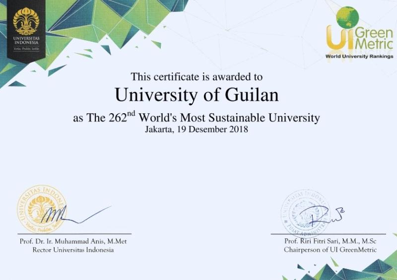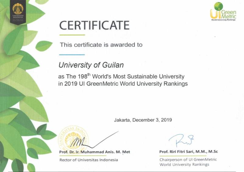 بر اساس آخرین اطلاعات منتشر شده از  پایگاه رتبه بندی بین المللی دانشگاه های سبز دنیا )GreenMetric( که در دانشگاه دولتی اندونزی مستقر است، دانشگاه گیلان با حضور پررنگ خود برای سومین بار متوالی در این نظام رتبه بندی،  با ارتقای 65 پله ای در رتبه بندی سال 2019 نسبت به سال 2018، رتبه 198 را در جمع دانشگاه های سبز جهان و  رتبه 3  در میان دانشگاه های سبز کشور در سال جاری از آن خود نمود. لازم به ذکر است دانشگاه گیلان با بهره گیری از مدیریت و برنامه ریزی صحیح در خصوص حمایت از محیط زیست و الگوسازی برای کاهش مصرف انرژی و گازهای گلخانه ای به ترتیب موفق به کسب رتبه های 2، ۳ و 4 ملی در شاخص‌های آموزش، حوزه ی اقلیم و انرژی  و مدیریت زیرساخت بین 22 دانشگاه ایرانی صاحب صلاحیت در این رتبه بندی شده است. رتبه بندی جهانی دانشگاهی گرین متریک با هدف ارائه چشم انداز جامع از شرایط و سیاست های مرتبط با محیط زیست و توسعه پایدار در دانشگاه های کشورهای مختلف راه اندازی شده و از سال ۲۰۱۰ میلادی به صورت سالانه از 6 شاخص کلیدی (محیط زیست و زیرساخت، انرژی و تحقیقات اقلیمی، مدیریت پسماند، آب، حمل و نقل، آموزش) برای ارزیابی استفاده می کند. گرین متریک ابزاری برای جلب توجه مدیران و سیاستگذاران در محیط های دانشگاهی فراهم کرده و سالانه بیش از 10 هزار موسسه توسط این نظام رتبه بندی ارزیابی می شوند و در نهایت فهرست موسسات برتر انتشار می یابد. این فهرست در سال جاری؛ 780 موسسه از 85 کشور در سراسر جهان را شامل می شود که در این میان؛ دانشگاه وخنینگن هلند، دانشگاه آکسفورد انگلستان و دانشگاه کالیفرنیا-دیویس رتبه های برتر جهانی را از آن خود کرده اند. روابط عمومی دانشگاه گیلان کسب این موفقیت را به جامعه علمی دانشگاه تبریک می گوید